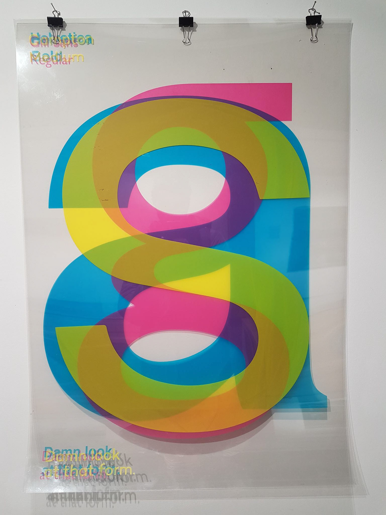 For this project I wanted to experiment with overlaying some of my letter forms on to A1 acetate. I screen printed onto three separate layers of acetate and hung them up to see how each form interacted with one another.